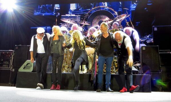 Christine McVie graced the stage of the O2 Arena for a second night at the third and final London show of the 2013 European tour. McVie, who surprised concert attendees on Wednesday night with an appearance during Fleetwood Mac’s first encore, performed “Don’t Stop” and joined her former bandmates for a bow after the performance.