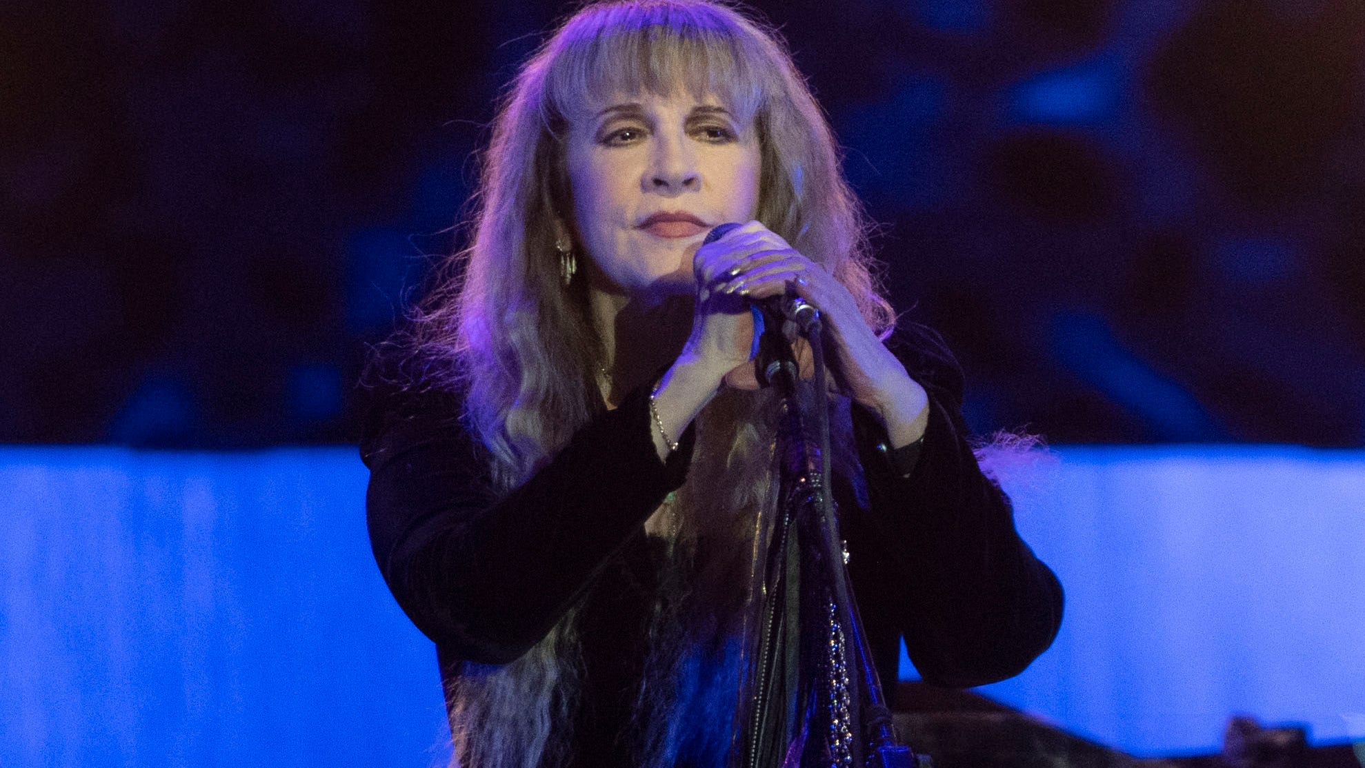“So anyway, this is just to tell you about your dreams. Okay, this is my ‘Just Ask, Stevie’ column. If and when you think your dreams are falling apart, just ask Stevie, and she will tell you that in 1973, I wrote the song that you’re gonna hear in one second. And it never even got played because Buckingham Nicks never even toured. So not only was it not a single, the whole record actually tanked. And I mean down the road, yes, everybody thought it was like this great, great record, but who knew? We certainly didn’t know. So if you think your dreams are just trashing out and you’re never gonna make it to where you wanna go, that’s not true because I’m standing here tonight singing the song that was never heard in the world — ever! In 1973! So it may take a while to get to your dreamy place, but you will get there. I promise you, I promise you [kissing sound]. It’s called ‘Crying in the Night'”